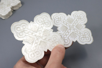 Идеально подходит для декорирования церковной одежды, атрибутики, национальных костюмов и других текстильных изделий. Аппликация отличается колоритным и ярким внешним видом, высокой прочностью и износостойкостью, сохраняет свои качества даже после многократных стирок, добавляя нужные акценты и символичность любому проекту.