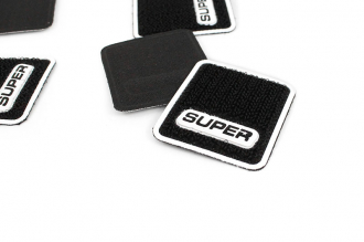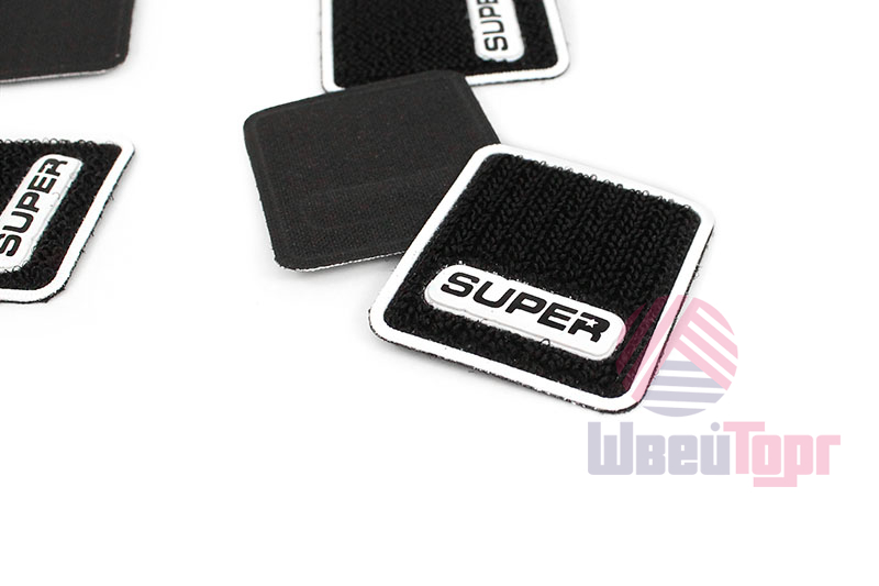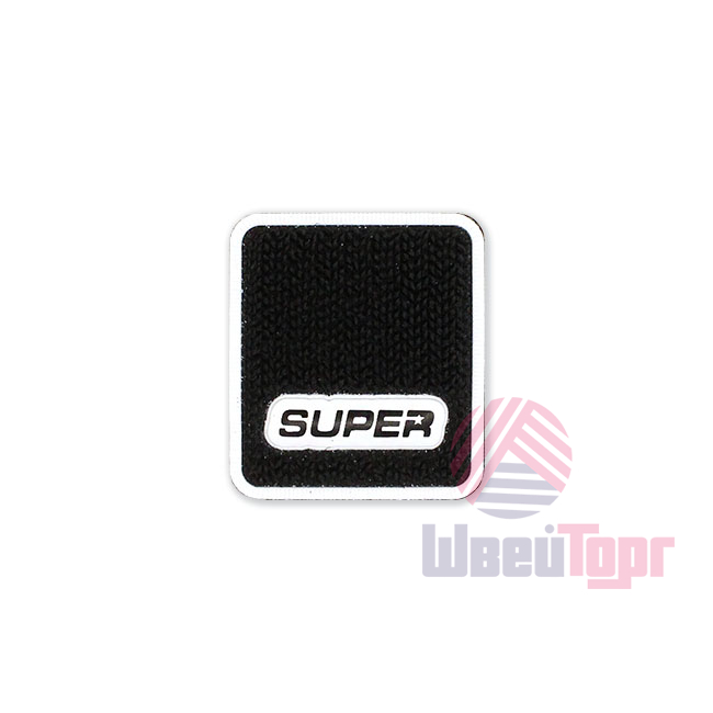 Бирка пришивная износостойкая, изготовлена из синтетического материала в лаконичном чёрно-белом цвете. Слегка прямоугольная форма размером 4х4,5 см имеет узкую белую рамку. Лицевая сторона отличается уникальной ворсистой текстурой, созданной из мелких петелек, что придаёт тактильную мягкость и премиальный вид. Стильный акцент в виде белой плашки с надписью "SUPER" завершает дизайн, делая бирку интересным элементом в одежде и аксессуарах.
