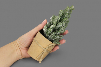 Создайте уютную зимнюю сказку с этой миниатюрной ёлочкой! Она покрыта кристаллами снега и крепко установлена в миниатюрный горшочек из крафта.