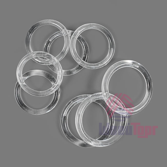 Кольца выполнены из прозрачного, прочного пластика и имеют достаточно широкую область применения. Их можно использовать в качестве фурнитуры для нижнего белья и купальников, фурнитуры для сумок. С их помощью можно декорировать домашний текстиль, использовать в различных творческих проектах: макраме, создание бижутерии. Также, колечки можно использовать как пряжку для ремешка, подхваты для штор, оформив их шнуром.