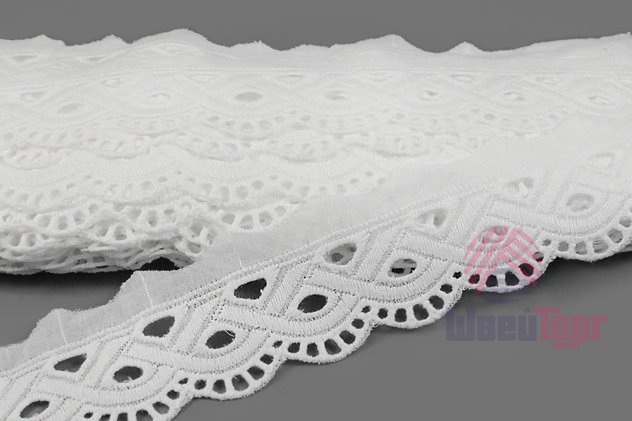 Прошва выполнена из мягкого хлопка с изящной машинной вышивкой и перфорациями. Создаёт эффект нежного кружева и приятна к телу.