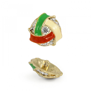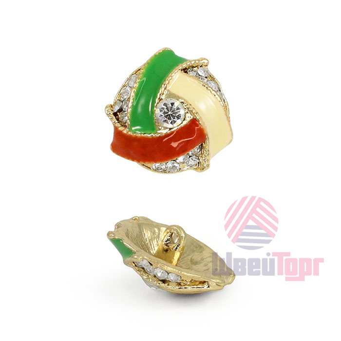 Эта элегантная пуговица станет изысканным акцентом вашего изделия. Её оригинальный дизайн сочетает в себе контрастные переплетающиеся элементы и множество искрящихся страз. Диаметр пуговицы: 2,2 см.