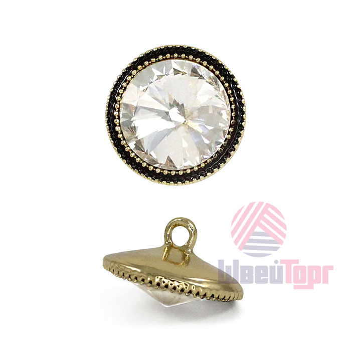 Элегантная пуговица, станет изысканным акцентом вашего изделия. Её оригинальный дизайн сочетает в себе акцентную центральную часть, в виде крупной гранёной бусины, которую обрамляет контрастный декоративный обод. Пуговица эффектно переливается на свету. Диаметр пуговицы: 2 см.