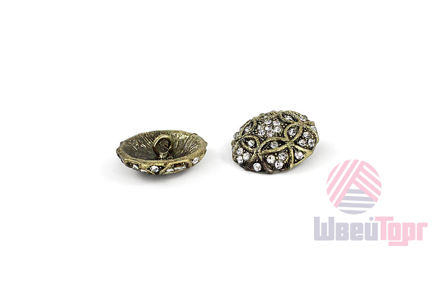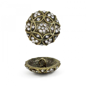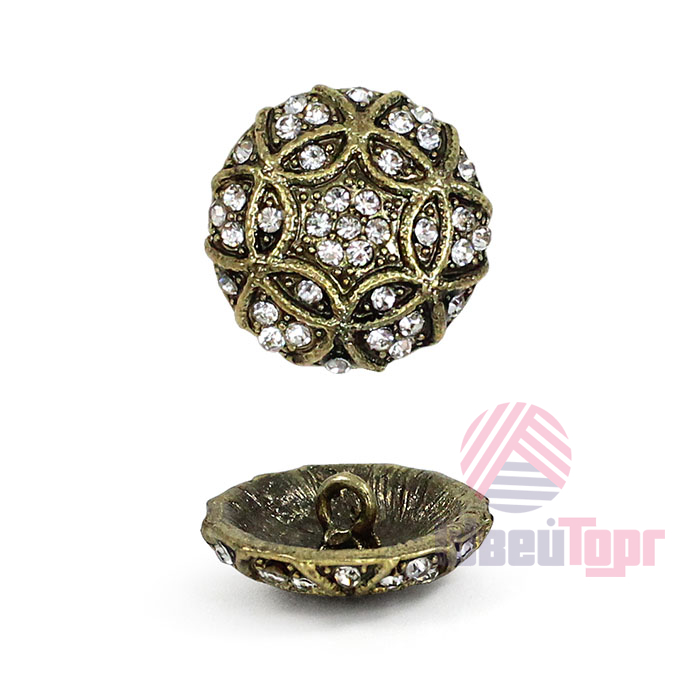 Эта элегантная пуговица, станет изысканным акцентом вашего изделия. У пуговицы оригинальный дизайн, с лицевой стороны она усыпана мелкими стразами, переливающимися на свету. Диаметр пуговицы: 2 см.