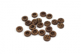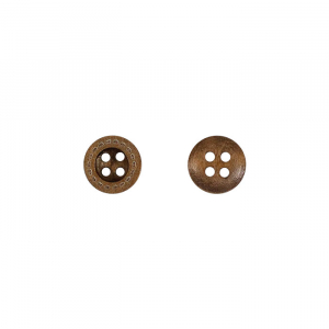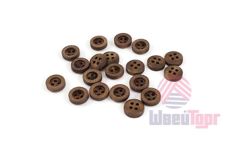 Натуральная пуговица из тёмного дерева диаметром 1,1 см. Минималистичный дизайн с лаконичным пунктирным ободком и утончённой вогнутой формой.