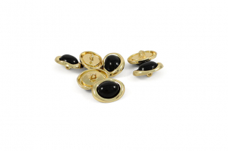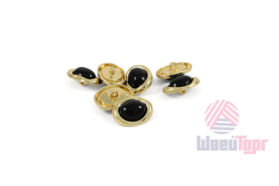 Эта пуговица напоминает миниатюрное произведение искусства. Её основа – стильный асимметричный овал, в центре которого, словно драгоценный камень, сияет выпуклая глянцевая вставка. Обрамленная золотистой «рамкой», она притягивает взгляд своей безупречной чистотой линий и лаконичностью.