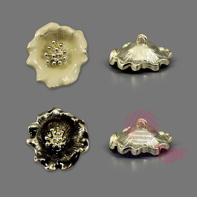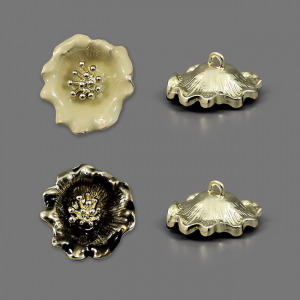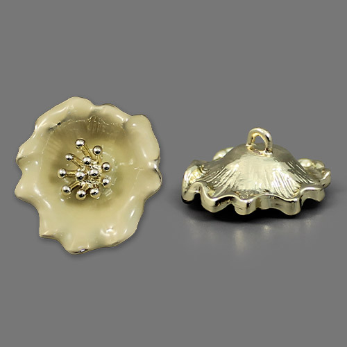 Эта металлическая пуговица на ножке, выполненная в форме цветка с золотистыми тычинками, станет стильным и контрастным акцентом для ваших изделий. Пуговицы выполнены в двух вариантах: нежный - золото/крем и более дерзкий - золото/чёрный. Оба варинта идеально сочетаются с ярко-золотистой основой.