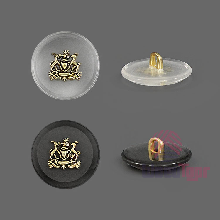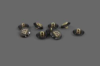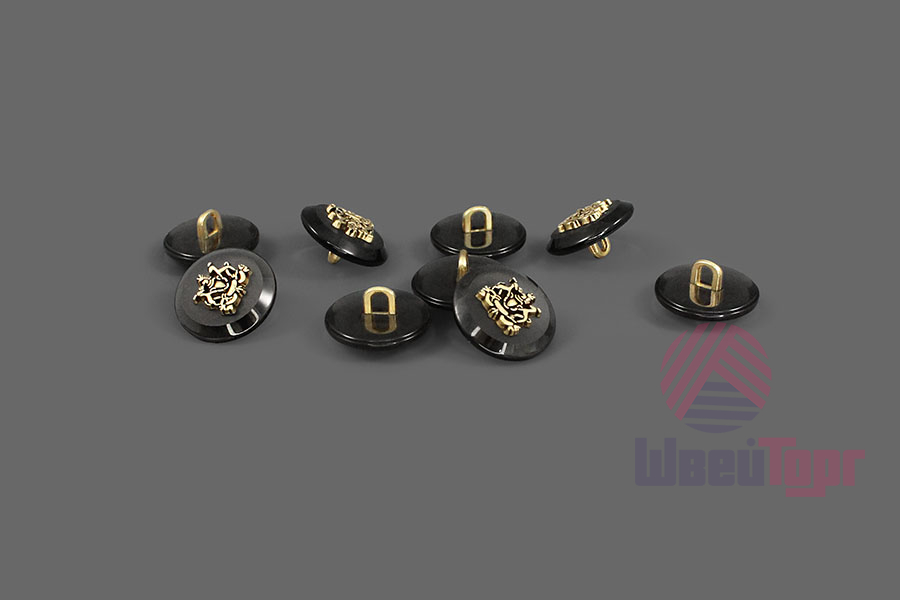 Пластиковая пуговица на ножке для создания стильного образа. Пуговица собрана из двух частей – полупрозрачная матовая основа и золотистый накладной элемент, в виде стилизованного герба. Сдержанный и интересный элемент для оригинального образа.