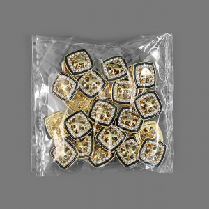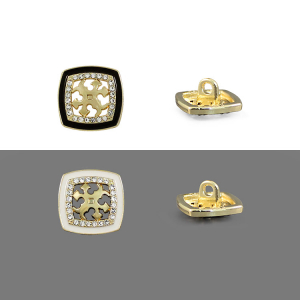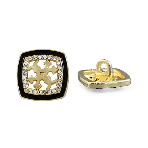 Позвольте вашему наряду расцвести! Эта металлическая пуговица напоминает драгоценную миниатюру. Её оригинальный дизайн завораживает: основа из золотистого металла, с контрастным чёрным ободком по краю, всё это прекрасно гармонизирует с акцентным резным элементом в самом центре и тонкой рамкой из мелких страз.