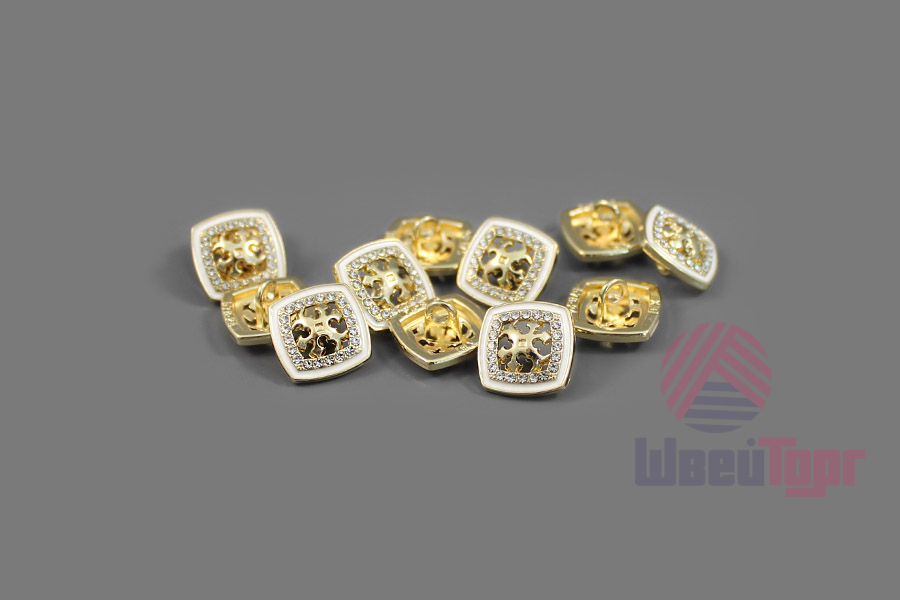 Стильная металлическая пуговица на ножке, имеет мягкую квадратную форму (размер - 12х12 мм).
