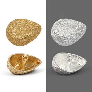 Эта пуговица на ножке сразу привлекает внимание своей нестандартной формой, слегка мятой, и уникальной фактурной поверхностью. Такой выразительный дизайн делает её настоящим акцентом, способным преобразить и украсить любой предмет одежды. Пуговица представлена в двух благородных цветах – матовое серебро и матовое золото, что позволяет подобрать идеальную фурнитуру для вашего проекта, добавляя ему индивидуальности и стиля.