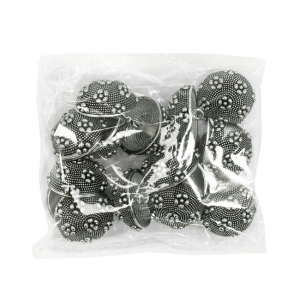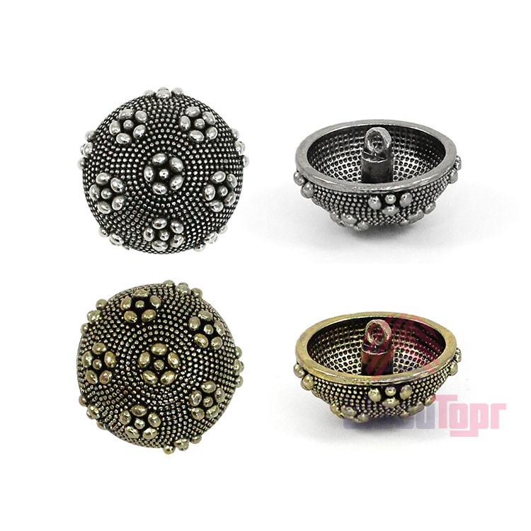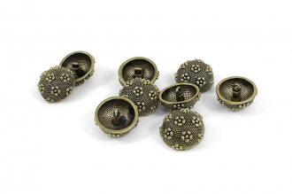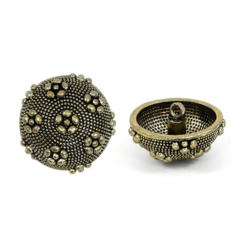 Пуговица доступна в двух цветах – чернённый и антик – оба варианта выгодно подчёркивают рельефную поверхность и добавляют пуговице нотку роскоши. Прочная ножка обеспечивает удобное пришивание, а необычный дизайн делает эту пуговицу настоящим акцентом в любом образе. Данные пуговицы прекрасно подойдут для ваших костюмов и жакетов.