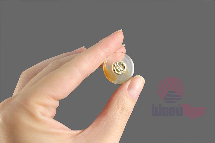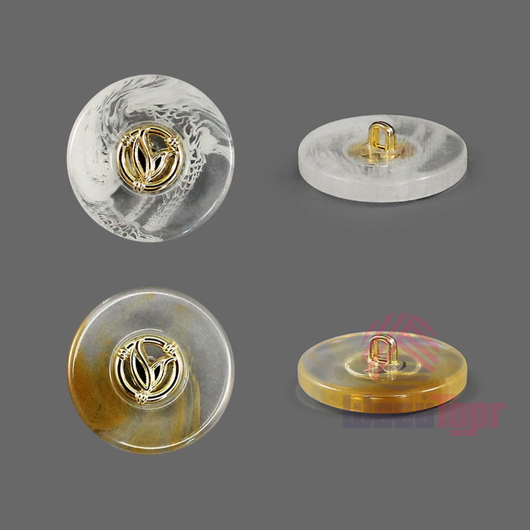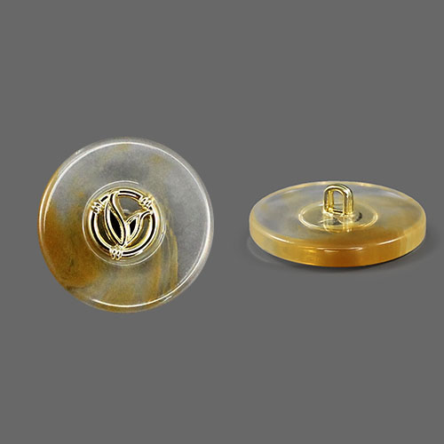 Пластиковая пуговица на ножке для создания минималистичного и стильного образа. Пуговица собрана из двух частей – полупрозрачная основа с эффектом разводов и золотистый накладной элемент, в виде двух листочков . Сдержанный и интересный элемент для оригинального образа.