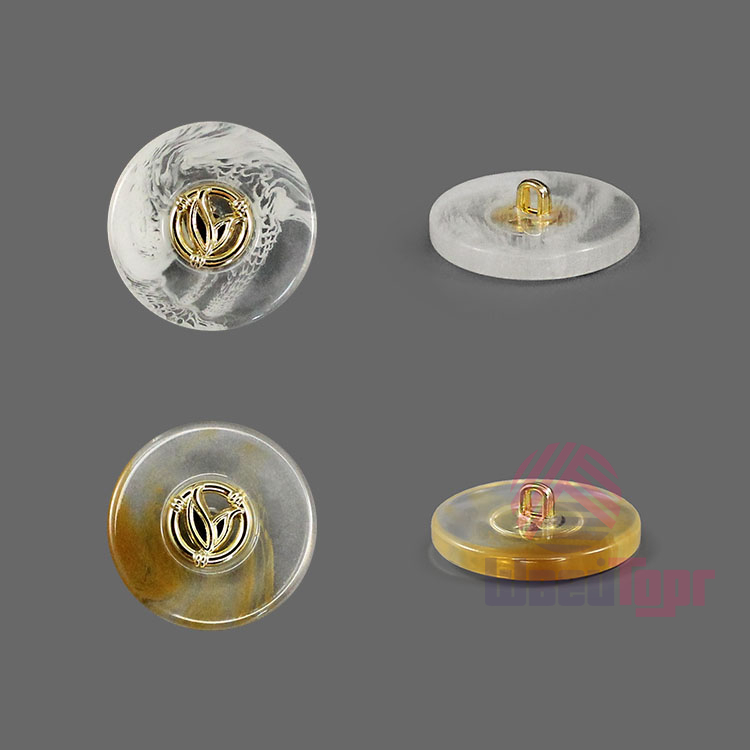 Пластиковая пуговица на ножке для создания минималистичного и стильного образа. Пуговица собрана из двух частей – полупрозрачная основа с эффектом разводов и золотистый накладной элемент, в виде двух листочков . Сдержанный и интересный элемент для оригинального образа.