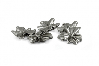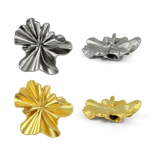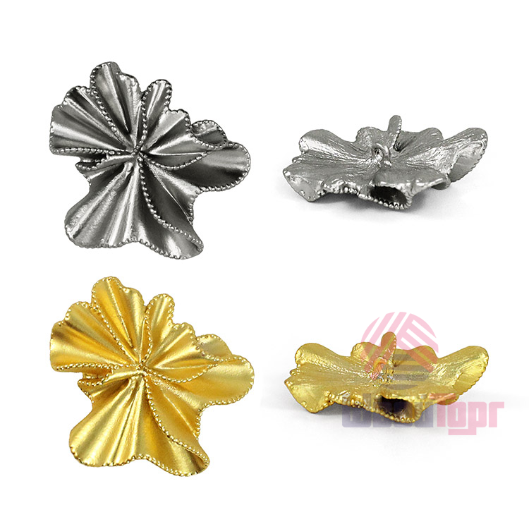 Стильная пуговица для тех, кто ценит современный дизайн и внимание к деталям. Её уникальная форма в виде цветка и матовая фактура, создают стильный акцент. Эта пуговица станет идеальным выбором для дизайнерских проектов и преображения вашего гардероба. Пуговица представлена в двух цветах – матовое серебро и матовое золото.