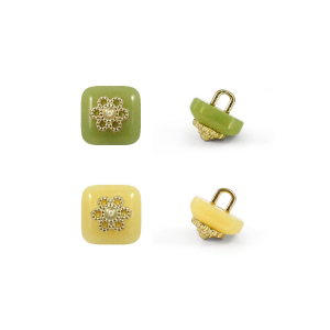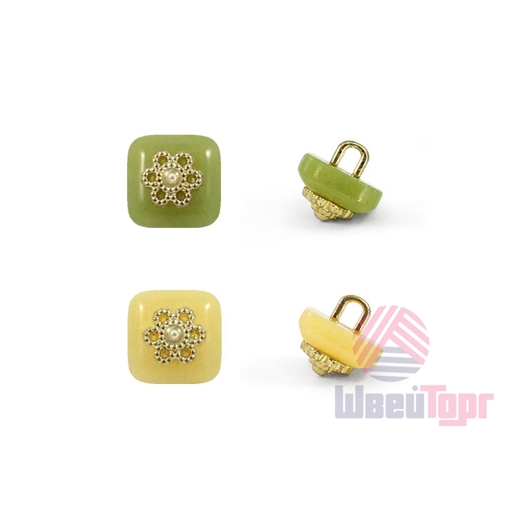 Пластиковая пуговица на ножке для создания милого и стильного образа. Пуговица имеет привлекательный дизайн – матовая минималистичная основа, которую украшает объёмный металлический элемент, в центральной части, в виде золотого цветка. Сдержанный и интересный элемент для оригинального образа. Пуговица представлена в шести цветах: чёрный, белый, жёлтый, персик, салатовый и зелёный.