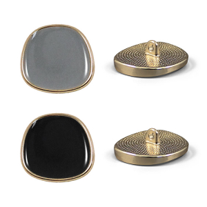 Пуговица на ножке для создания минималистичного и стильного образа. Пуговица собрана из двух частей – золотистая металлическая основа и лицевая часть, слегка вогнутая, с лёгким глянцем и абсолютно гладкой поверхностью. Пуговица представлена в четырёх вариантах расцветки: кремовая, белая, серая и чёрная. Сдержанный и интересный элемент для оригинального образа.