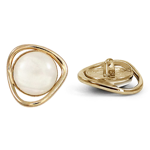 Эта пуговица напоминает миниатюрное произведение искусства. Её основа – стильный асимметричный обод, в центре которого, словно драгоценный камень, сияет выпуклая глянцевая вставка. Пуговица притягивает взгляд своей безупречной чистотой линий и лаконичностью. Представлена в двух вариантах: меланж/серебро и белый/золото.