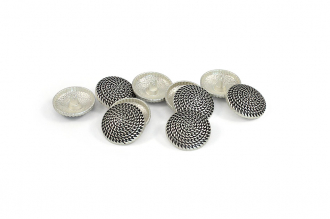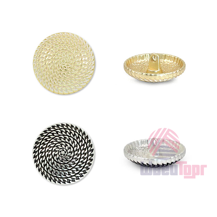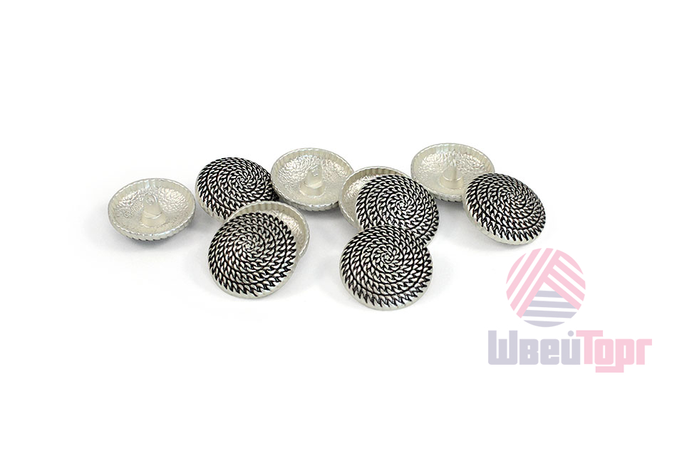 Эта пуговица на ножке сразу привлекает внимание своей уникальной фактурной поверхностью в виде имитированных цепей. Такой выразительный дизайн делает её настоящим акцентом, способным преобразить и украсить любой предмет одежды. Пуговица представлена в двух благородных цветах – серебро и светлое золото, что позволяет подобрать идеальную фурнитуру для вашего проекта, добавляя ему индивидуальности и стиля.