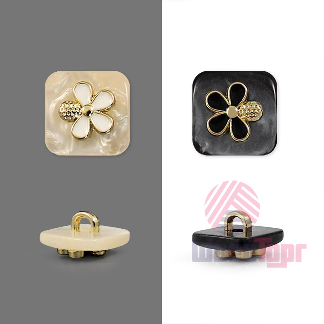 Пластиковая пуговица на ножке, имеет квадратную форму (размер 12х12 мм), станет отличным украшением для костюмов, жакетов и блуз.