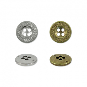 Эта пластиковая пуговица с эффектной металлической имитацией обладает лёгким весом, что делает её практичной в пришивании и комфортной в носке. Классическая круглая форма с четырьмя отверстиями и лаконичным углублением в центре дополнена контурной гравировкой «MILITAIRES EQUIPEMENTS».