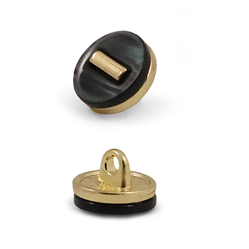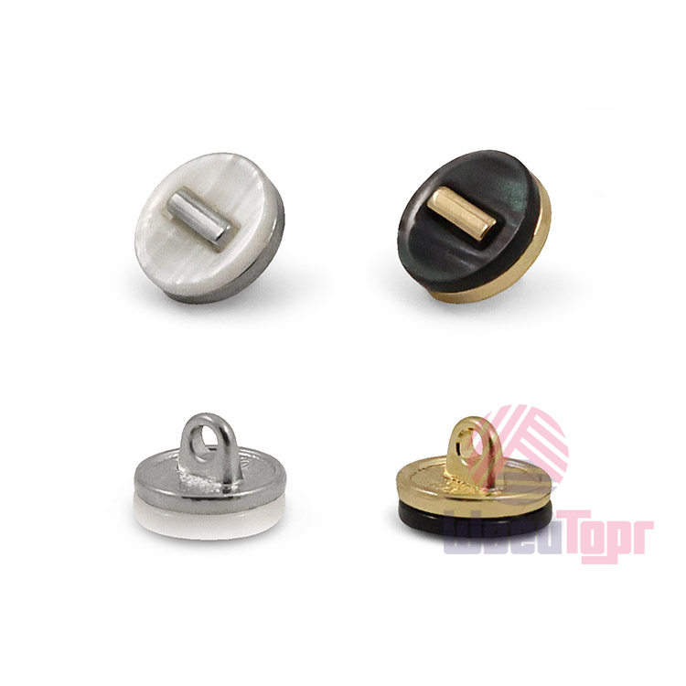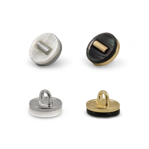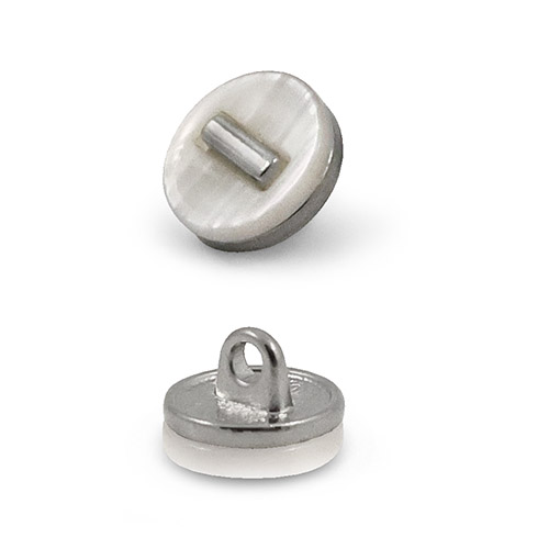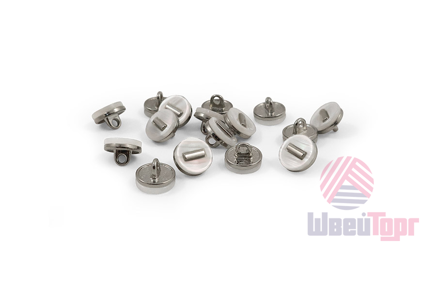 Эта пуговица на ножке станет утончённым акцентом вашего наряда. Пластиковая круглая пуговица, украшена акриловой накладкой с эффектом перламутра. Пуговица представлена в двух вариантах: чёрный/золото и белый/серебро.
