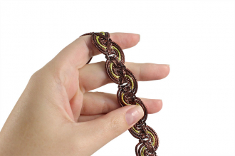 Декоративная металлизированная тесьма служит акцентной отделкой для разнообразных проектов, от скрапбукинга до пошива национальных и сценических костюмов. Плетение тесьмы создаёт красивый и оригинальный узор, а металлизированные нити создают яркий блеск.