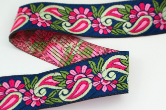 Данная жаккардовая тесьма обладает высокой прочностью, устойчива к растяжению и истиранию. Рисунок формируется непосредственно в процессе плетения, что придаёт тесьме эффект вышивки. Благодаря высококачественному полиэстеру тесьма сохраняет яркость цветов и не теряет своего внешнего вида долгое время.