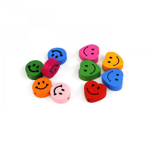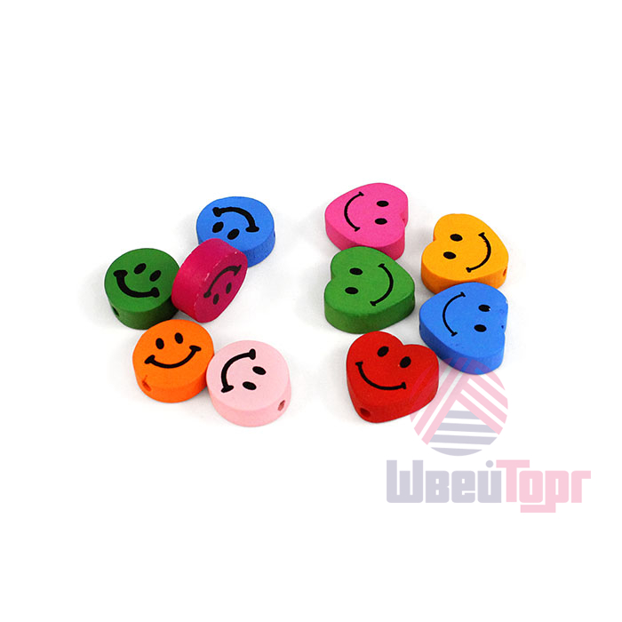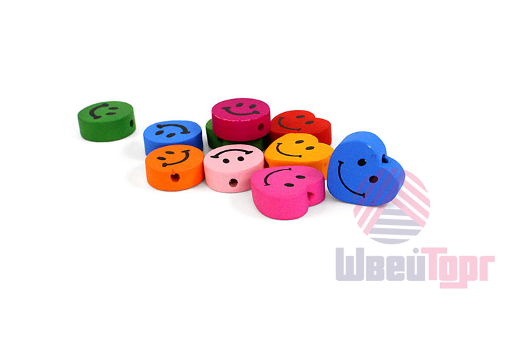 Натуральное деревянное украшение, представлено в двух вариантах: Смайлик круглой формы (16 мм) и Смайлик в форме сердечка (18 мм). Данные украшения имеют отверстие, что позволяет их использовать как бусину и создавать с их помощью множество украшений.